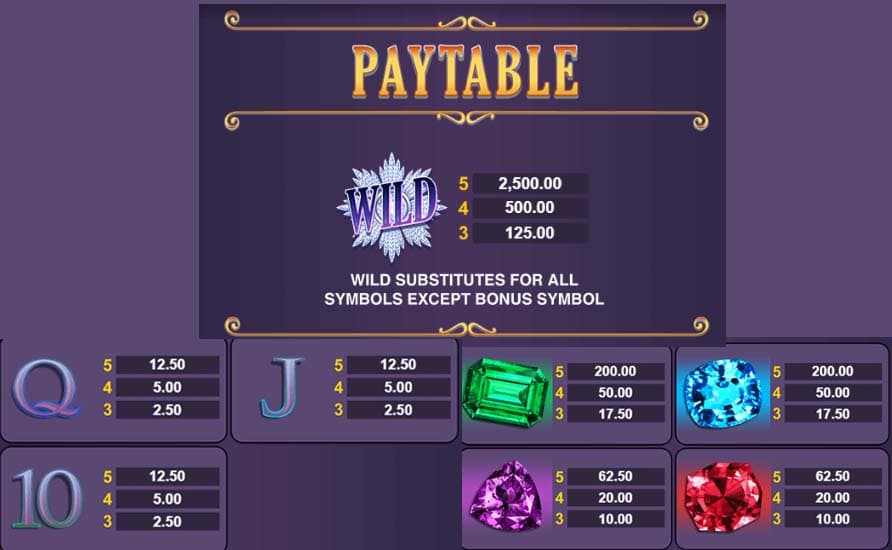In the back, pearls, rings and diamonds are scattered around without a care, conjuring a picture of the substantial treasure enabled in this game. Diamonds on the reels appear in green, blue, purple, and red.