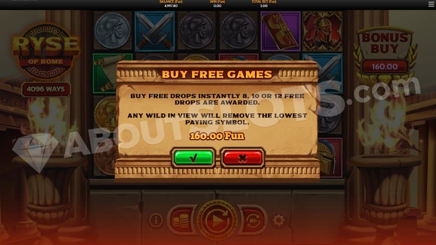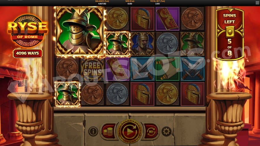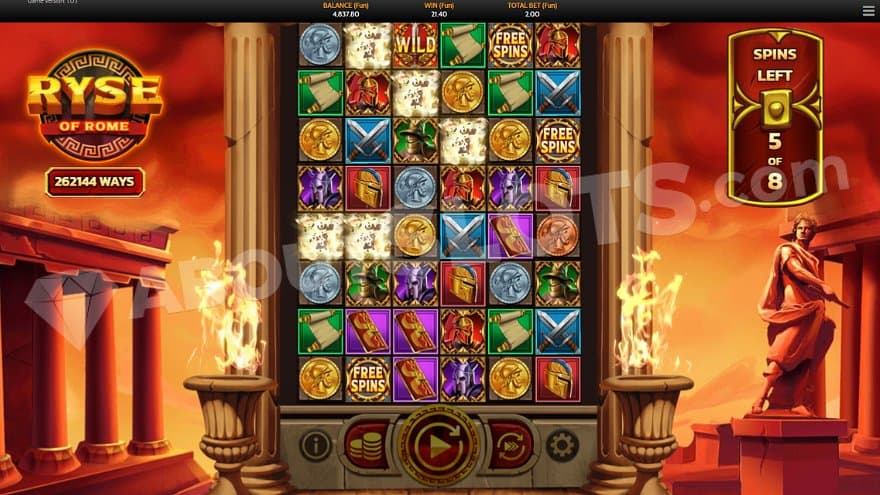 Ryse isn’t an English word, and we haven’t figured out what it stands for. There’s a video game called “Ryse: Son of Rome,” which might have been the inspiration for this game. It follows the Roman centurion Marius Titus as he becomes one of the leaders of the Roman Legion. Ryse of Rome has 6 reels on a stone background, and a fire is burning on each side. In the top left corner is the game’s logo and a counter keeping track of the present ways to win. Every spin starts with 4096 ways to win, which can increase to 262144 when the reels are 8 rows high. To make a win, you need to land at least 3 of the same symbols on adjacent reels, starting on the first reel to the left. You can play the game on all devices, such as desktops, notepads, and mobile phones.