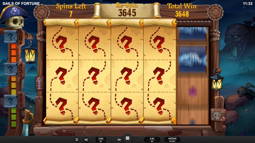 When you spin the reel and land a Mystery Map, you immediately receive a Respin, where you then get more Respins as long as the symbol remains on the reels. This symbol will then move one step to the left of each Respin made and after each spin, all Mystery Map symbols will display the same symbol type. The Respins end when all Mystery Map symbols have moved outside the reels.
