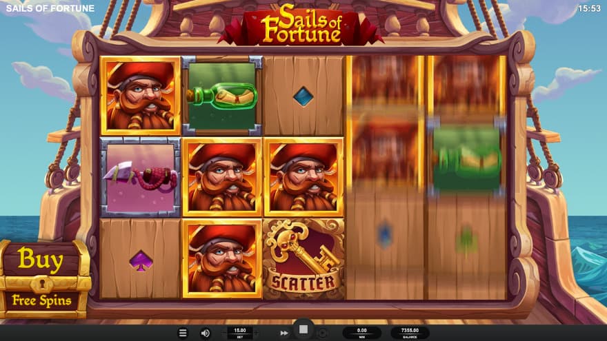 Sails of Fortune is a new video slot from Relax Gaming that has 5 reels and where the number of rows starts at 3 but can increase to 6 during the game. This change in rows results in that 243 paylines can be up to 7776 paylines. You can choose between making a Min.bet of 0.10 and a Max.bet of 30. The game's RTP is slightly above average and in the normal game the RTP is 96.17% and if you use the game's Bonus Buy feature you have an RTP of 96.65%. As the game has a very high volatility, it can take longer before winnings are generated, but when you finally land winning symbols, they can become large very quickly. The game's potential maximum win is 36383X the bet and this together with a Hit frequency of 23.80% during the spins.