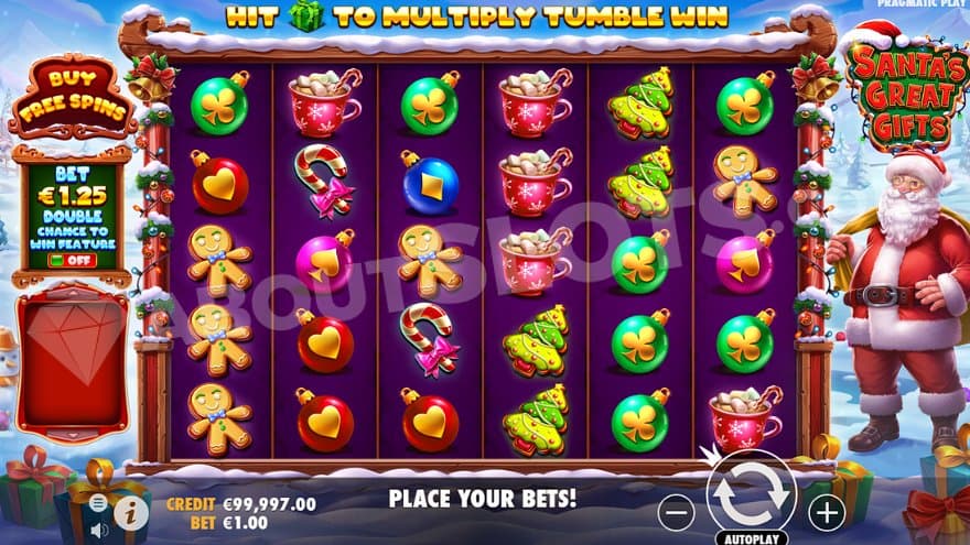 You better prepare for what can happen in Santa’s snowy winter world. Make sure to look out for the features Tumbling Wins, Multiplier Symbol, Scatter Symbol, Ante Bet, Free Spins, and Bonus Buy.