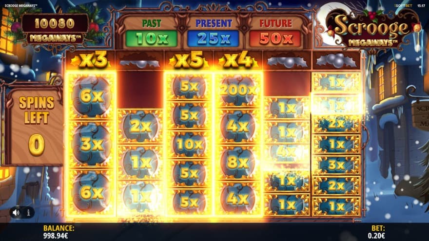 The usually bitter Mr. Scrooge gives us a warm welcome in this slot, where its Christmas theme certainly puts you in a good mood. It is a slot that has the Megaways mechanic, which results in the number of rows varying during the spins where you can get up to 117649 ways to win. By being able to land multiple symbols along with wild symbols, big winning combinations can be created and thus big payouts. The symbols pay well, with Ebenezer Scrooge paying the most, where he pays 25X the bet if you land 6 of that symbol. The Megaways mechanic as usual has an accompanying Cascading Wins feature, where multiple winning combinations can be created in succession by the winning symbols disappearing and making way for new ones to land. As a nice touch to the spins, the Hauntings of Christmas can be randomly activated, where you either get to take part in the maximum number of Megaways or scatter symbols are placed out, giving a chance to activate the bonus game. The Scrooge Cash Respins feature is the highlight of the game, where you get to enjoy iSoftBet's Hold & Win feature, which we have seen before including Moon Spirit: Hold & Win.