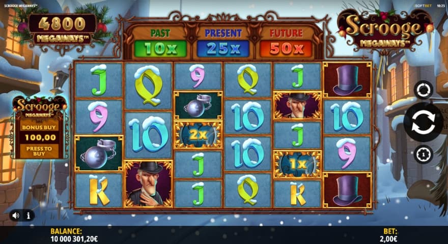 Scrooge Megaways is a new casino slot from iSoftBet in which we meet Ebenezer Scrooge from Charles Dickens' novel A Christmas Carol. Mr. Scrooge is a very miserable man, who dislikes everything that has to do with Christmas. By being visited by three different ghosts who show him different scenarios from the past, present and future, he softens up. From being grumpy to becoming a changed man and being happy again, is something that these ghosts certainly manage to make him become. Whether this turnaround was due to them showing him all the slots that would be created in his name we leave unsaid. There have been several slots created over the years featuring this grumpy man, with Christmas Carol Megaways delivering glorious gifts for Christmas 2020.