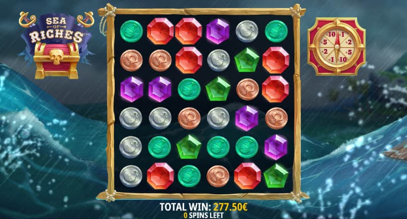 Sea of Riches is a video slot from iSoftBet that has 6 reels and 6 rows, where you create a winning cluster by getting 5 or more of the same symbol types that are adjacent. You can choose between making a Min.bet of 0.20 and a Max.bet of 20. Sea of Riches has an RTP of 96.0%, Hit frequency on 35.3% and a medium volatility. Together with the pirates, you can succeed in getting a win of up to 2416X the bet.