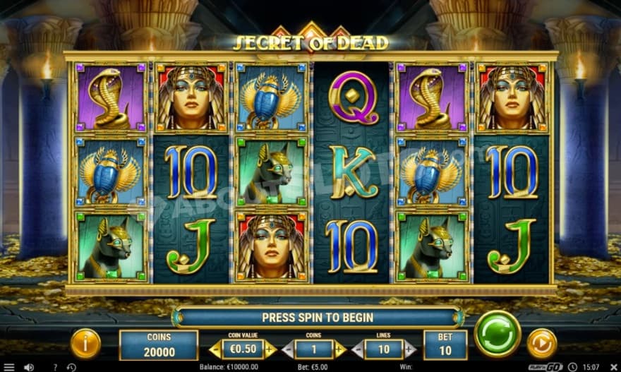 Secret of Dead is a new casino slot from Play'n GO where we once again visit Egypt in search of hidden treasures. It's a place that one would think should be devoid of treasures after all the previous Egyptian adventures that have been created, where we have Book of Dead and Scroll of Dead among others. But oh, how wrong one could be, since we this time have managed to find out the secret of the dead that can result in winnings of up to 10000X the bet. It's an adventure where the expanding symbol feature combined with free spins can let the player take part in this huge win. Let's visit this site and find out what else you can expect to see during the spins.