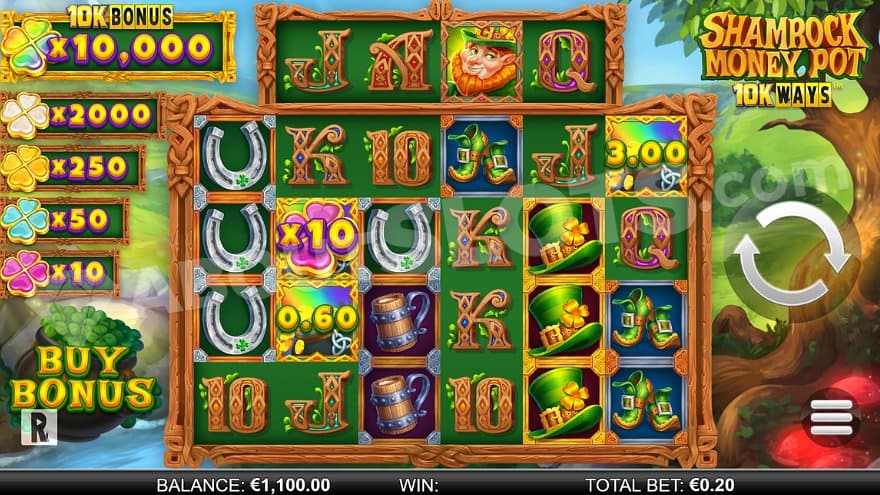 Shamrock Money Pot 10K from ReelPlay is an Irish leprechaun-themed adventure with 10000 ways to win and a respins feature offering wins up to 12309X the bet.