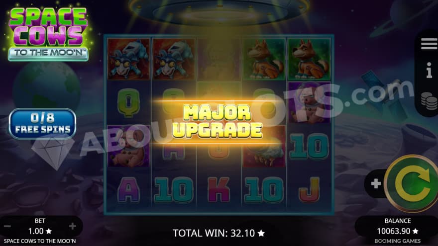 Major Upgrade = Whenever this feature is triggered, all lower-paying symbols are upgraded to higher-paying symbols, increasing the potential for bigger wins. If no lower-paying symbols are present on the reels, a random higher-paying symbol will convert into another higher-paying symbol.