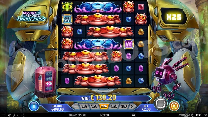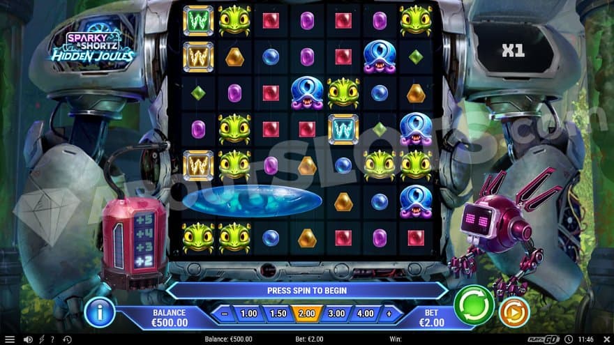 Sparky & Shortz Hidden Joules is a new casino slot from Play’n GO with two robots as the main characters. We were first introduced to these charismatic droids in Sparky & Shortz, where they go all in to save their home planet Alpha Labori. In this sequel, the 10 paylines have been exchanged, and you’re awarded wins by landing 5 or more symbols connected horizontally or vertically. There’s also a win multiplier that can grow up to 25X when you’re making wins and 4 different special Wild Symbols that perform unique actions for you. Let’s go; Sparky & Shortz are waiting for you.