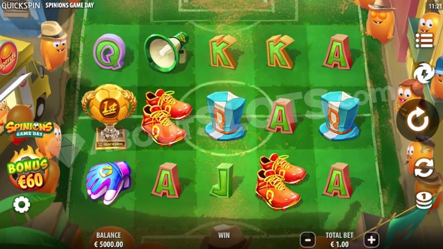 Spinions Game Day is a new casino slot from Quickspin where we once again get to meet the Spinions but at a whole new scene! It’s been six years since we were first invited to their beach party in the first version of the game, but barely a year ago, we attended their festive Christmas party in Spinions X-mas Party. If you’ve played one of the previous versions, you know that it’s all about creating juicy full lines with sticky wilds. In this sequel, they have modified that a bit. With a higher max win, a new theme, and roaming wilds, this is looking to be the best one yet, and we will tell you all about it later in this review. Now, these cute little creatures have organized a football tournament for us, so tie your shoes, grab your kit, and let’s play!