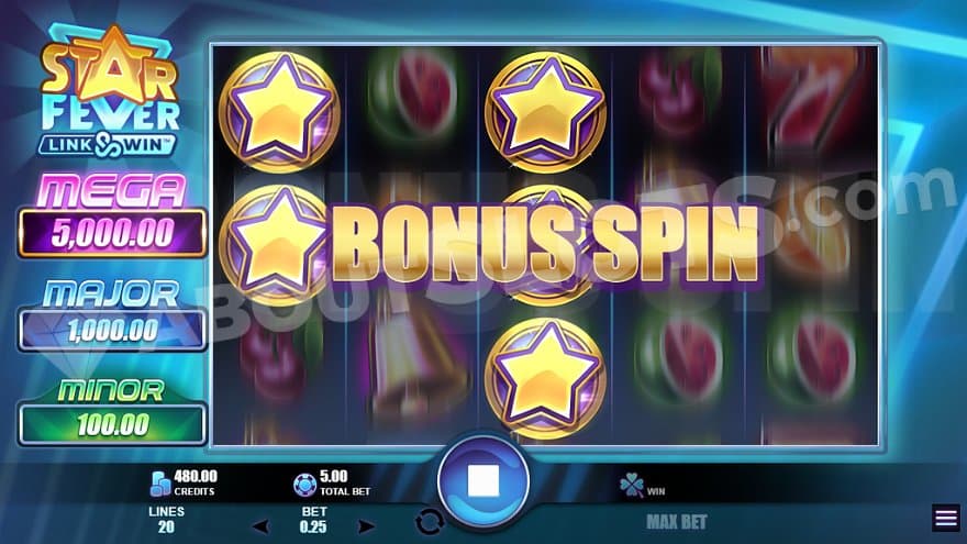 The Star Coins in Star Fever Link&Win is your gateway to not only one but two great features. The Star Wild kicks in when 4 or 5 Star Coins hit the grid, transforming them all into Wilds before you get a bonus spin. If 3 of the Stars are on the same grid, they’ll be transformed into Multiplier Wilds with multipliers of 3X.