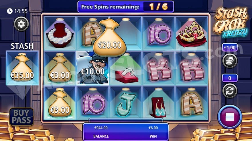 Stash & Grab Frenzy is a video slot from Light & Wonder with 5 reels, 3 rows, and 10 paylines. The Min.bet is 0.1, and the Max.bet is 20. The game comes in two versions, with the default RTP of 96.16% and a lower one at 94.15%. It’s played with mid/high volatility, and the perfect gambling session can result in the max win of 12500X the bet.