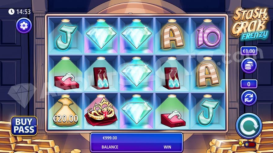Stash & Grab Frenzy is a new casino slot from Light & Wonder where the objective is to rob a bank with the help of three robbers, collecting cash values. The game has a cinematic feeling, with the music sounding like a mix of the themes from James Bond and the Pink Panther. Valuables like rings, necklaces, and diamonds can produce sweet wins, but the best ones are produced when the robbers start sneaking around in the free spins. Let’s go and explore this bank vault together.