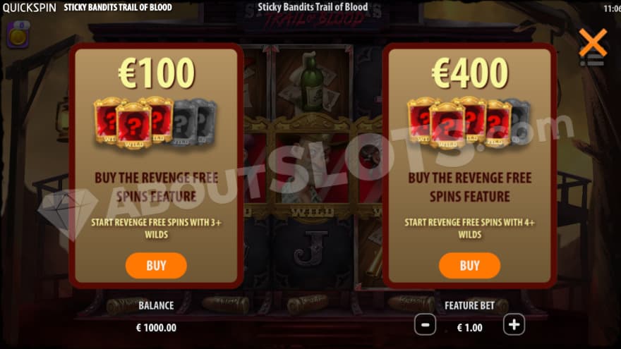 Within this western adventure among gunslinging bandits, we have a couple of lovely features to help us in our quest for the big bounty. The features are Wild Symbol, Revenge Free Spins and Bonus Buy.