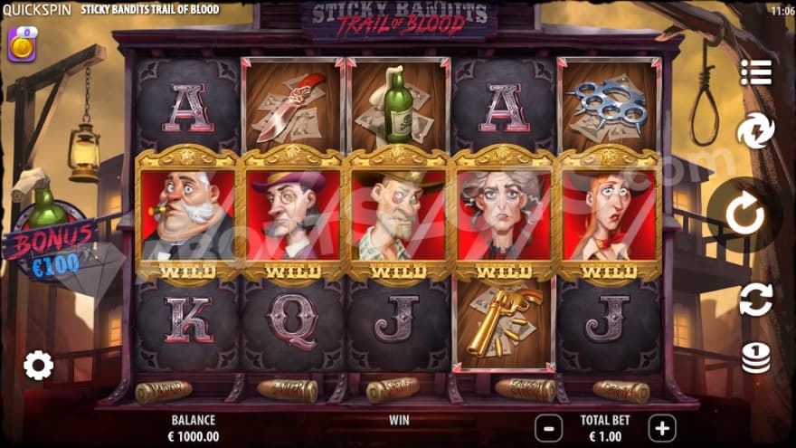Sticky Bandits Trail of Blood is a video slot from Quickspin that features 5 reels, 3 rows and 10 paylines. You can choose between making a Min.bet of 0.10 and a Max.bet of 100. It is a slot that has an RTP that is slightly higher than the average, as it has an RTP of 96.23%. Sticky Bandits Trail of Blood has a high volatility, where you can win up to 17,279X the bet.