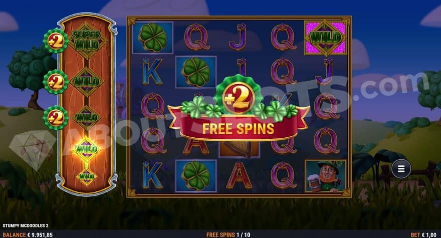 Stumpy McDoodles 2 from Foxium is a leprechaun casino slot where we find an expanding wild symbol that can cover all the reels in the free spins features.