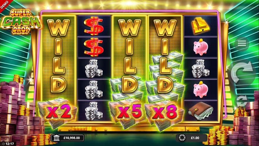 Super Cash Drop from Bang Bang Games is a very entertaining slot for the Wild loving player, where Super Stretched Wilds with multipliers can generate multiple respins and big wins.