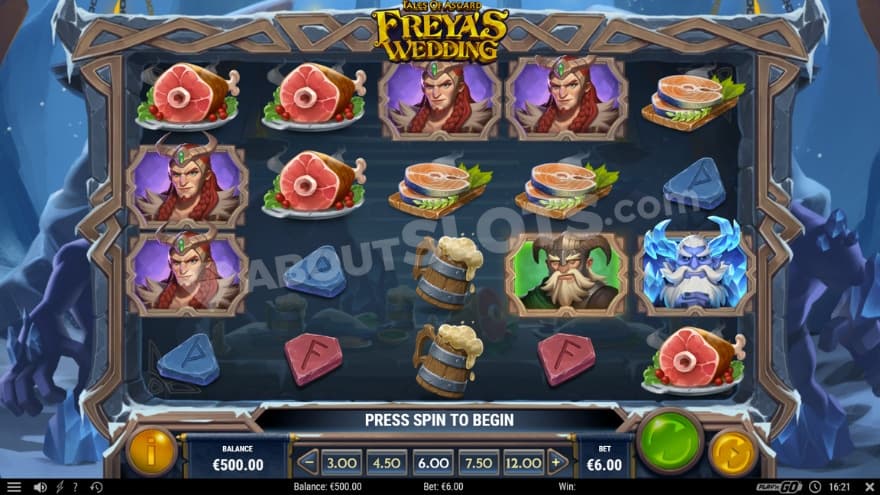 Tales of Asgard: Freya's Wedding is a new casino slot from Play'n GO that brings us another gaming experience in the Norse mythology. From the name of the game, it sounds like a festive event is about to take place, but the fact is that Thor's hammer Mjolnir has been stolen and the Ice King of Jotunheim demands to marry Freya in order to return the stolen hammer. They accept the offer and set the time for the event, but with a little twist that Thor himself is dressed up as Freya, where he will give them a big surprise. Yes, the premise within this slot is for a change leaning towards the comedic way and lighter spins are included, where a medium volatility is used. There are plenty of great features that can be activated during the spins and with the help of these you can win up to 2500X the bet. Let's visit this place and witness this wedding.