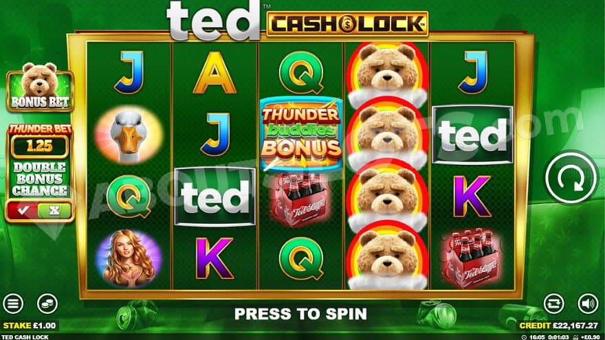 Pretty much anything can happen around Ted, and he has prepared quite a show for the player. You'll find the features Wild Symbol, Thunder Bet, Rainbow Ted Scatter Symbol, Thunder Buddies Bonus Scatter Symbol, Ted Modifiers, Free Spins, Ted Bonus Wheel, Ted Colossal Spins, Lazer Gun Spins, Super High Spins, and Bonus Buy.