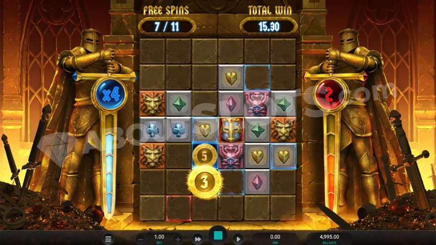 The design of the game consists of a templar knight theme, where we visit a castle where these knights reside. On both sides of the reels, you can see two large templar knights standing with swords as big as themselves. You can play this slot on all the devices notepads, desktops and mobiles. You create a winning combination by landing 3 or more of the same symbol type on adjacent reels starting at the far left. Each time you create a win, the tumble feature is activated, where new symbols fall down to cover the empty positions, and this continues as long as new wins are created.
