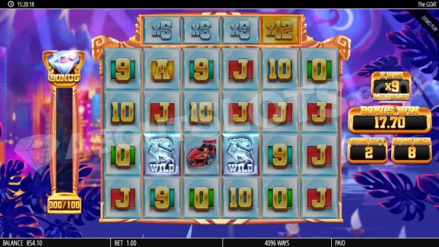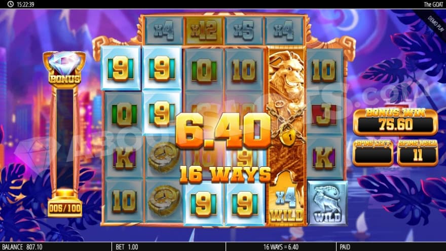 The game's wild symbol helps to create more winning combinations by substituting for other symbols, except for the G.O.A.T and scatter symbols.