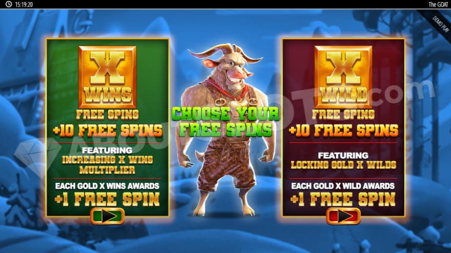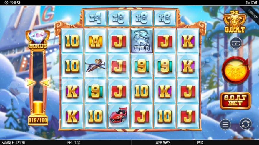 The greatest of all time, well this slot is hardly that, but it certainly provides the player with a hefty dose of entertainment throughout the game. The game is allocated up among the snowy mountains, where a goat gives us a warm welcome. The winter landscape creates harmonious spins, whereby the car, plane and golden watch symbols feel slightly mismatched to this theme. The wild symbols help enable more winning combinations, but it's clearly the G.O.A.T symbols that can shake things up considerably when they land. This symbol will turn into one of three different symbols when it lands, where it can expand, multiply or add multiple diamond scatter symbols to the game's meter on the left.
