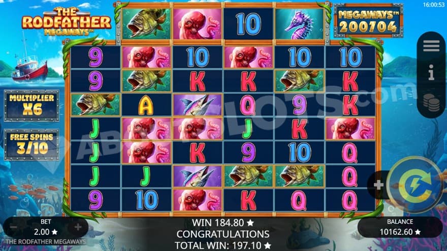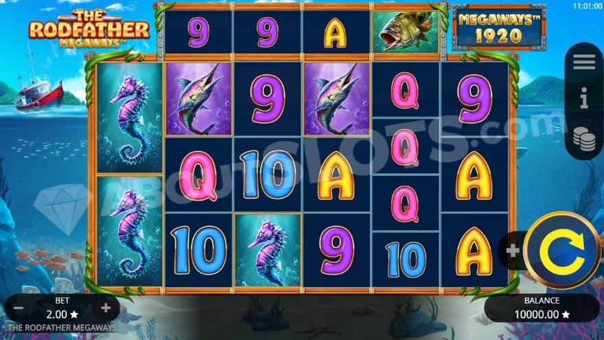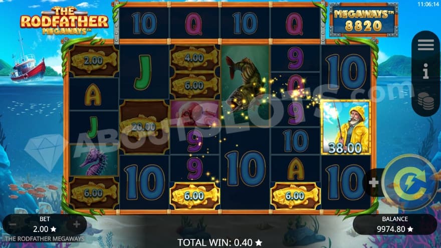 Graphically, The Rodfather Megaways is a tier-one slot. Repeatedly, Booming Games amazes us with its gorgeous visuals, but perhaps we should just get used to it. The game genuinely feels alive, with the ocean ecosystem going about its day in the background. Booming has also worked well with the animations. Bubbles appear as the reels crash down, further making the game feel lively. A well-crafted setting can make a dull game look great, but the gameplay is also quite enjoyable.