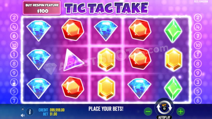 Within this glittering gaming adventure, we have a couple of great features to help us in our quest for the bigger wins. The features are Wild Symbol, Tic Tac Take Respin and Bonus Buy.