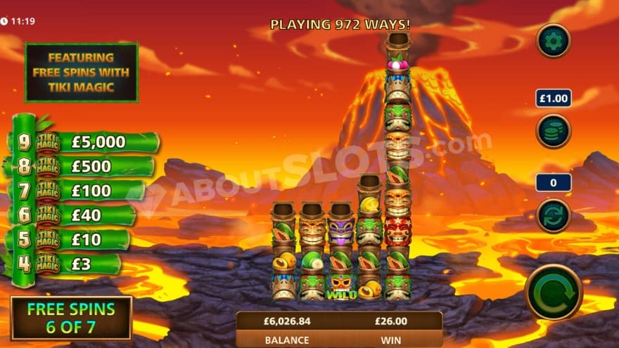 6 Tiki Magic Symbols = You get an instant jackpot prize of 40X.