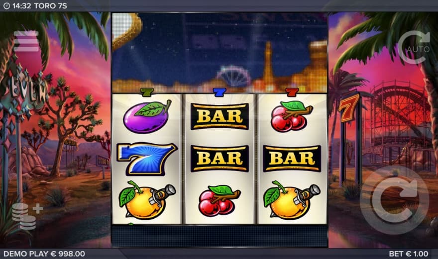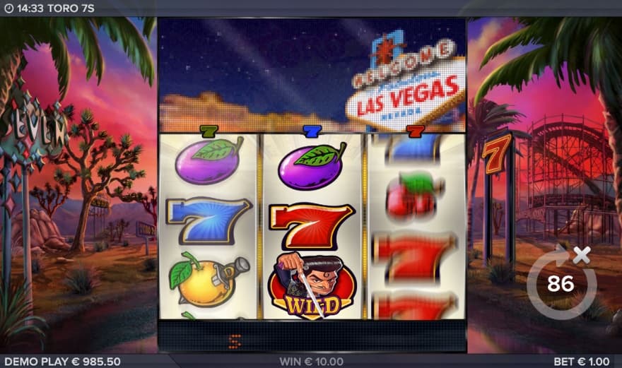 The design of the game is based on a theme where we once again meet the Toro and Matador, this time going to a Las Vegas-like location. In the background of the reels, you can glimpse a roller coaster, where every sign hint at sevens. During the spins, the music is atmospheric, with a base and electric guitar as the main instruments, accompanied by fierce drumbeats. You can play this slot on all the device’s mobiles, notepads and desktops. You create a winning combination by landing 3 of the same symbol types on adjacent positions starting from the leftmost reel.