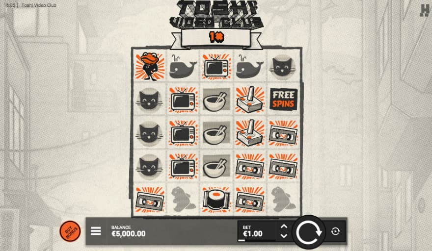 Toshi Video Club is a slot where its few colors and simpler design are compensated with very lucrative features that can provide big wins.