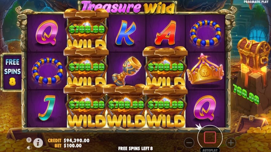 Treasure Wild is a video slot from Pragmatic Play that has 5 reels, 3 rows and 20 paylines. You can choose between making a Min.bet of 0.20 and a Max.bet of 100. It is an RTP that is higher than the average, where there is an RTP of 96.53% within both the normal mode and bonus buy feature. As mentioned, it is a high volatility (4.5/5), where you can win up to 4500X the bet.