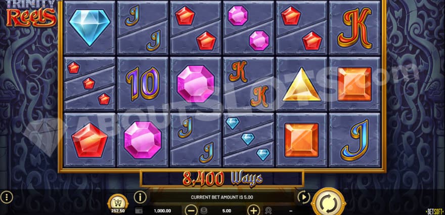 Trinity Reels is a new casino slot from Betsoft with plenty of innovation and a huge max win. Betsoft usually releases about 1 slot per month but is making moves this fall with the release of Captain´s Quest Treasure Island, Rags to Witches, and Trinity Reels within a month. Betsoft is one of the OG’s in the iGaming industry, so it’s great to see that they keep releasing great games. Trinity Reels is not very strong thematically but has original, innovative features combined with smooth graphics and gameplay. In a way, the game reminds us a little of slots like Frozen Gems and Prism of Gems. The gems might be a factor, but there’s also something about the gameplay, with its split reels creating loads of ways. Enough chit-chat; let’s dig in!