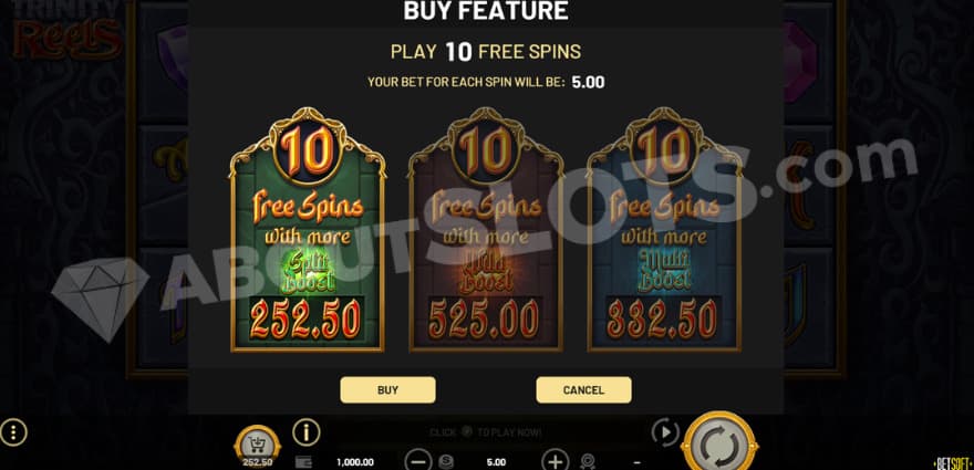 If you want to jump straight into the free spins feature, you can do so by buying it. If you choose to buy it, you will get the following options: