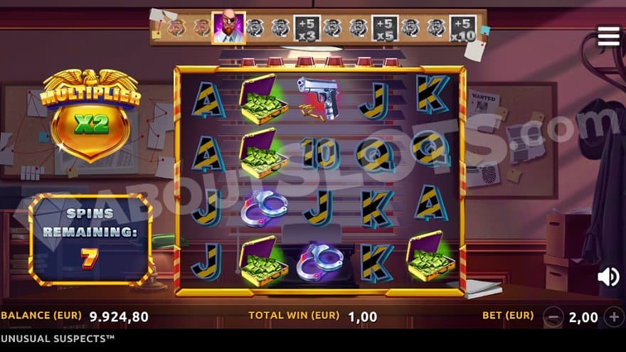 Unusual Suspects is a new casino slot from Northern Lights Gaming with some skilled criminals and a detective trying to follow their moves. Whenever a Wild Symbol lands, it marks its position with a frame for the following spins, just like the Wild Symbol in Treasures Of Kilauea. The wild frames in that game turn into Wild Symbols on every tenth spin, but Unusual Suspects isn’t that predictable. Instead, all frames turn into Wilds whenever the Detective Symbol appears. There’s also a Big Boss Free Spins feature, where you can earn extra spins and multipliers by landing Detectives.