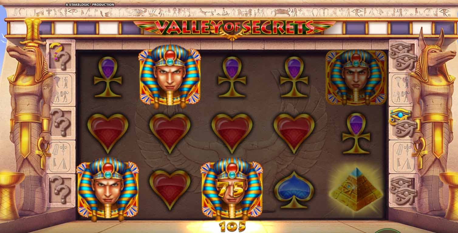Packed with 5 reels, 243 paylines, and impressive winning opportunities, the Valley of Secret slot brought to gamers by Stakelogic absolutely deserves players’ time and money especially those who appreciate beautifully designed ancient Egypt-inspired games. What makes this game different from other similar games is its unique collection of bonuses which result in impressive winnings.