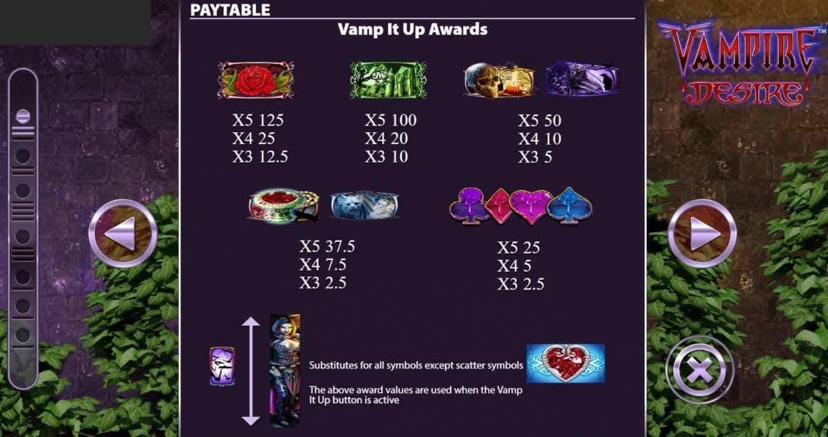 Furthermore, the Vampire Desire slot is accessible via every modern device including iOS and Android-powered portable devices from just 0.10 up to 500 credits per spin. In addition to being very rewarding, the Vampire Desire slot is beautifully designed, packed with high-quality graphics and visuals for an even more immersive gaming session from the very first spin of the reels.