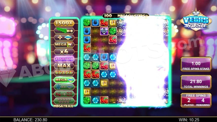The Vegas Rush might hit you at any moment with awesome features such as Wild Symbol, Megaclusters, Megatrail, Free Spins, and Bonus Buy.