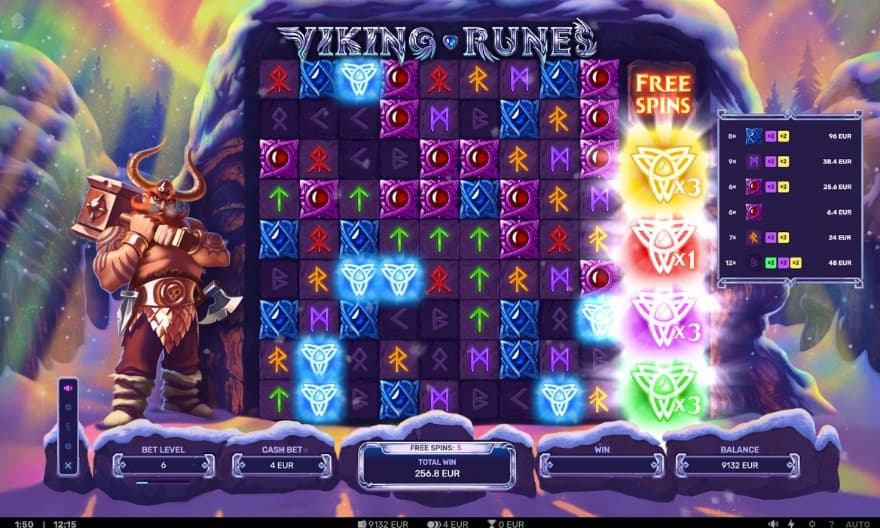When it comes to the features Runic Shuffle, Spell of Ancestors and Viking Sorcery, only one of these can be activated per cascade. The great thing though, is that they can appear in both the base game and in the free spins feature.