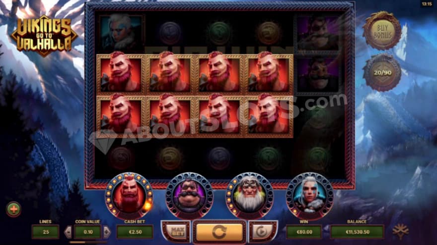 Vikings Go To Valhalla is a video slot from Yggdrasil that features 5 reels, 4 rows and 25 paylines. One can choose between making a Min.bet of 0.25 and a Max.bet of 50. It has a fixed RTP of 96%, which is unfortunately becoming more and more unusual now a days, where most other game providers choose to create slots with different sizes on the RTP. Vikings Go To Valhalla has a high volatility and a hit frequency of 21.73%, where you can win up to 23210X the bet.
