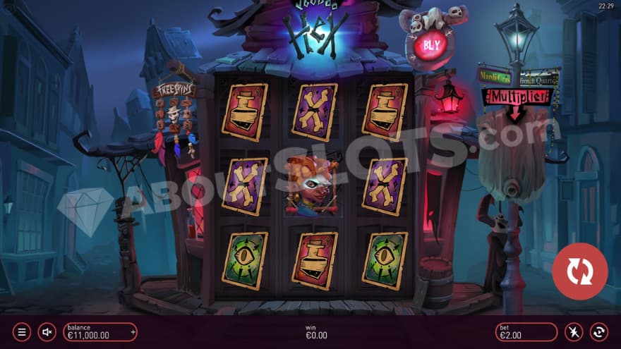 The game's design features a voodoo and hex theme, where we travel back to New Orleans in 1921, hours before the Mardi Gras event is about to unfold. In the background of the reels, you can see a foggy, empty street, with the voodoo shop placed in the middle. You can play this slot on all the devices notepads, desktops and mobiles. You create a winning combination by landing 3 of the same symbol type on adjacent reels starting at the far left.