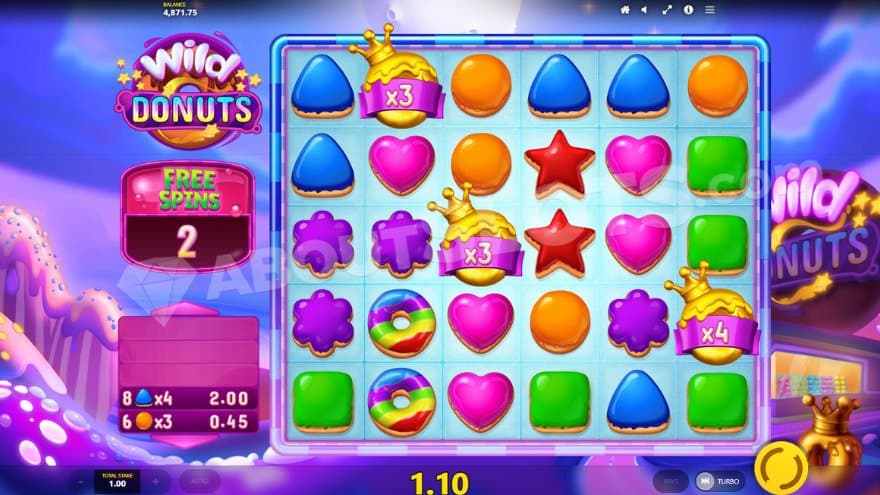 Wild Donuts is a video slot from Max Win Gaming that features 6 reels and 5 rows. There are no specific lines you need to connect in this game. Instead, a winning combination is created by landing 5 or more of the same symbol in a cluster, where a win then activates a tumbling feature. You can choose between a Min.bet of 0.2€ and a Max.bet of 100€, so whether you are a casual player or a high roller, you should be satisfied. The game has an excellent RTP of 96.3%. With its high hit frequency of 33.69%, this game will not feel dull for long periods but constantly engages you with connections and features. Lastly, it plays at a very high volatility and offers a max win of 10,000x the bet.