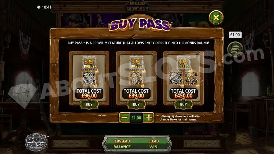 You can choose to buy a ticket straight to the free spins session, with 3 different prices depending on your choice. A free spins session with the wild chamber costs 89X the bet, and the price goes up to 96X the bet if you want the multiplier chamber instead. If you want to play the feature with both gun chambers, you’ll have to pay 450X the bet.