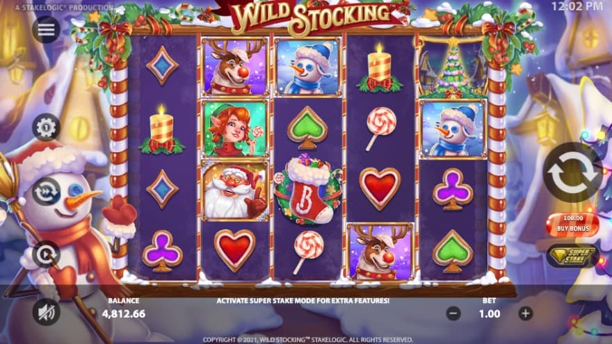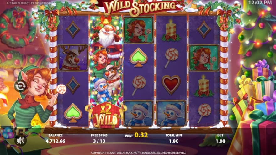 Wild Stocking is a video slot from Stakelogic that features 5 reels, 4 rows and 1024 ways to win. One can choose between making a Min.bet of 0.50 and a Max.bet of 250 (500 with the Super Stake active). There is an RTP that is slightly lower than the average, where in this slot we have an RTP of 95.50%. Wild Stocking has a high volatility (5/5), where the lucky player can win up to 25000X the bet.
