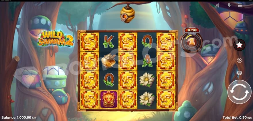 A brighter stage than in its predecessor sets the tone for Wild Swarm 2, in which the slot takes place within what seems to be a little bee village. Accompanying the strong visuals is an adventurous tune, keeping you hyped on your journey.