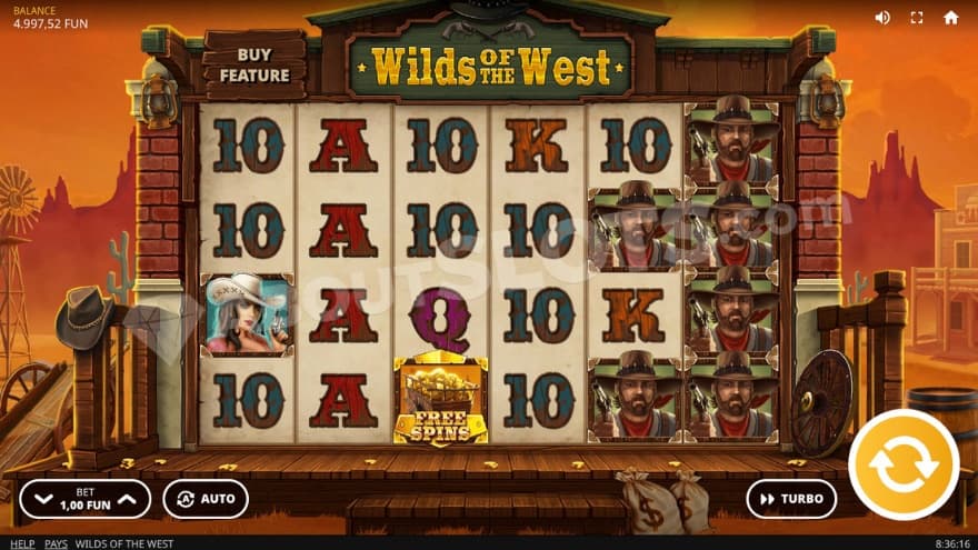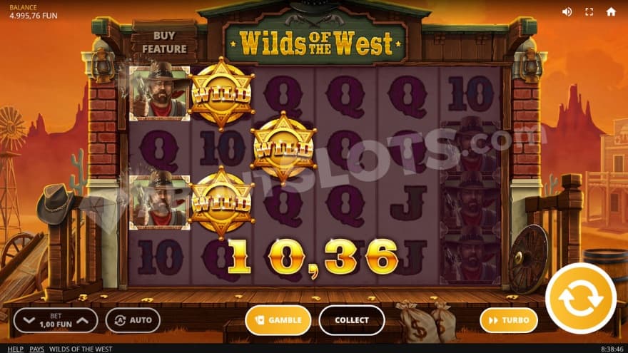 Within this wild video slot adventure, we have a couple of great features to help us in our quest for the big wins. The features are Wilds of the West, Free Spins Bonus, Gamble and Bonus Buy.