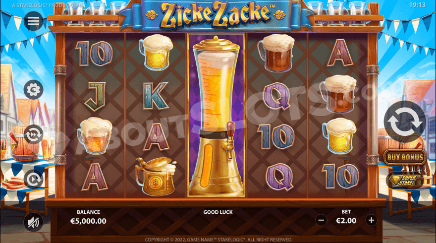 Zicke Zacke is a new casino slot from Stakelogic, where we get to travel to the German Oktoberfest, a festival full of beer, beer, and beer! The Oktoberfest is an annual folk festival in Munich, Germany, but it is also celebrated worldwide. It’s a 17-day festival, and around 7 million liters of beer are served during that, just in Germany. So, why is this game called Zicke Zacke? Well, it’s a famous chant during the Oktoberfest that goes something like: “Zicke Zacke Zicke Zacke Hoi Hoi Hoi”. We’re not entirely sure what happens after that, but we assume they…drink. Alright, class, the cultural lesson is now over; let’s take a look at the game!