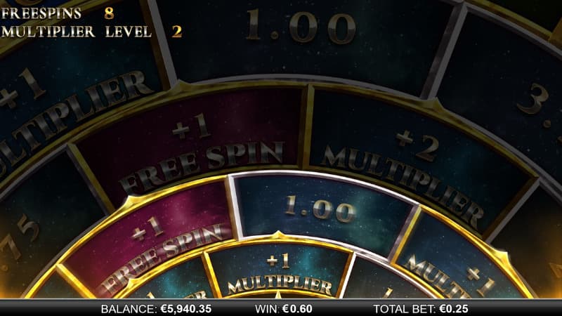 Once you have finished playing the Wheel feature, it's time to take part in the free spins and multipliers you have received. The great thing here is that every time you manage to get an extra reel, the win multiplier will increase by the size of the multiplier you received in the Wheel feature. You can also manage to get more free spins here by landing Wheel symbols. Each time you land 1 Wheel symbol you get 4 extra free spins.