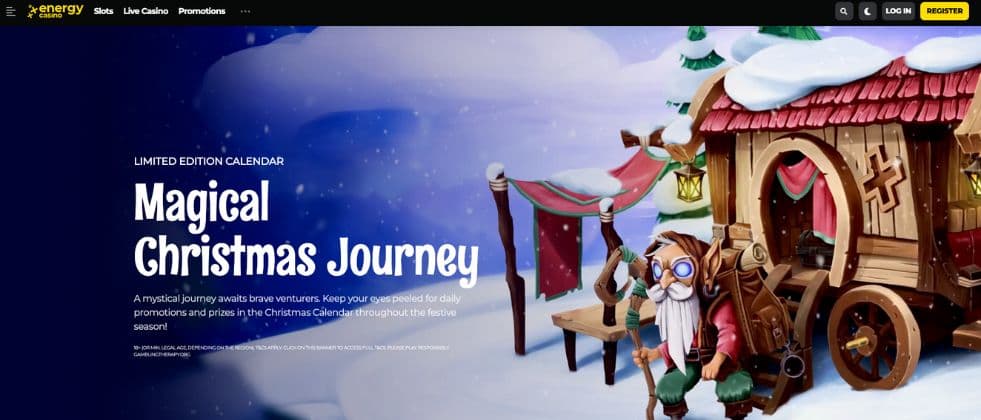 Energy Casino has a Visit the Magical Christmas Journey Calendar page! Click on the box that corresponds to that day to claim your reward and enjoy the mystery promotion! The Magical Christmas Journey promotion runs between 12:00 on 01.12.2022 and 23:59 (CET/GMT+1) on 26.12.2022.