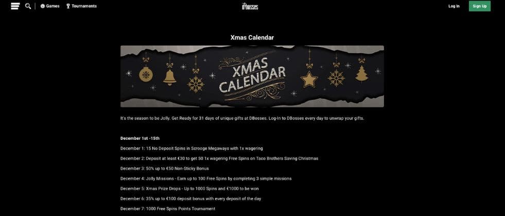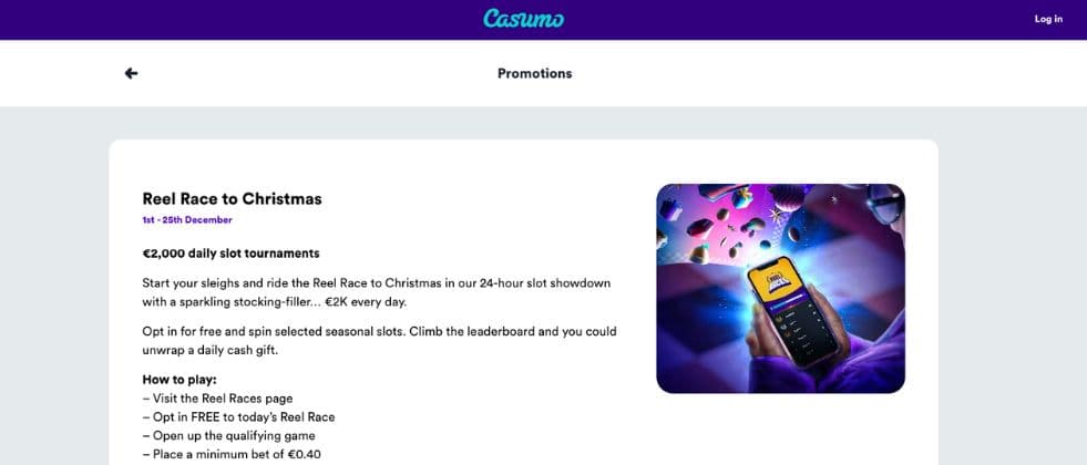 Casumo Casino has planned a Reel Race to Christmas! It’ll be running from the 1st to the 25th of December, and $2,000 daily slot tournaments. Opt in for free and spin selected seasonal slots. Climb the leaderboard and you could unwrap a daily cash gift.