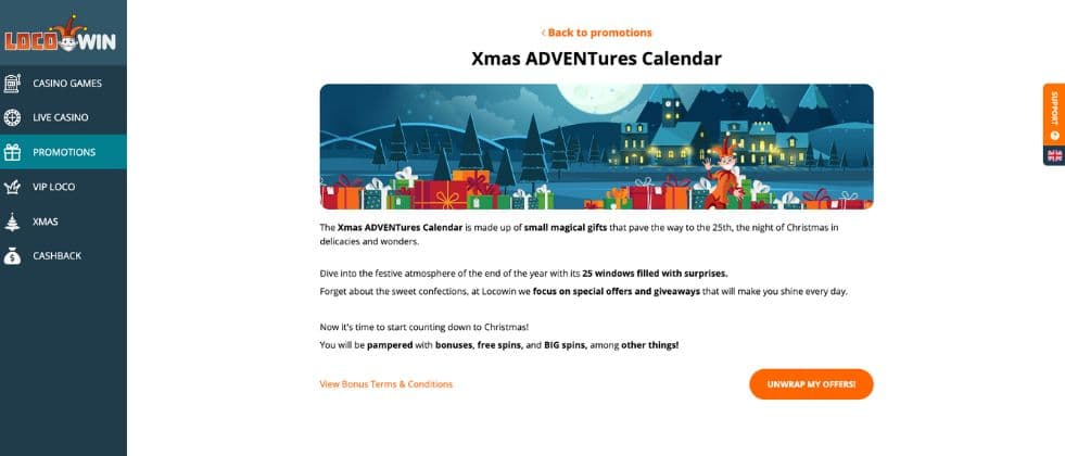 Begin your craziest Xmas experience by logging into your account at Loco Win. If you don't have one, click here to start your adventures! Check the calendar page every day until the 25th of December. What’s in store? A gift drop from the sack you don't want to miss!
